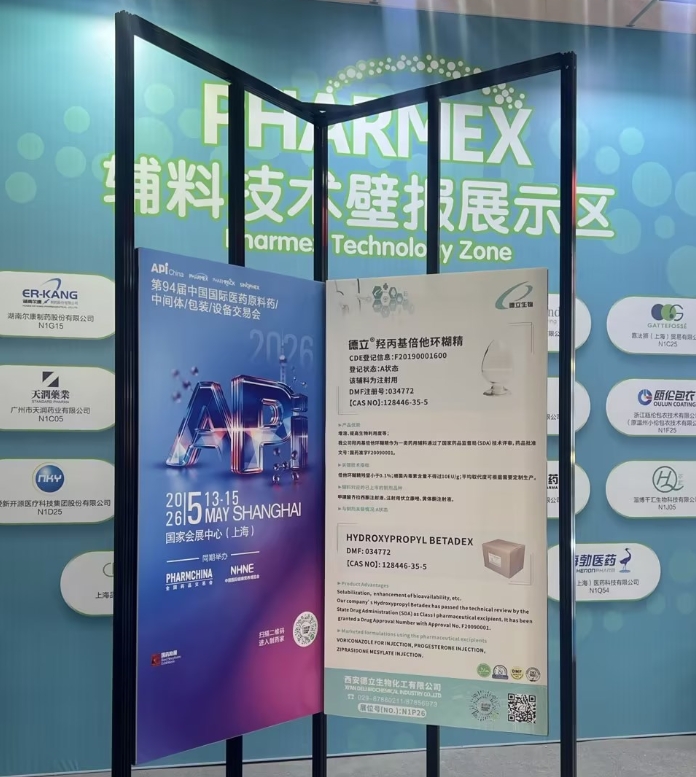 Xi'an Deli Biokimia Industry Co, Ltd melu ing pameran 2025 API sing dianakake ing Chongqing, nuduhake produk kapal penggedhe perusahaan-Hydroxypropylyl Betadex (HPBCD)lanBetadex Sulfobutyl Ether Sodium (SBECD)-Yen global lan profesional industri farmaseutik global.