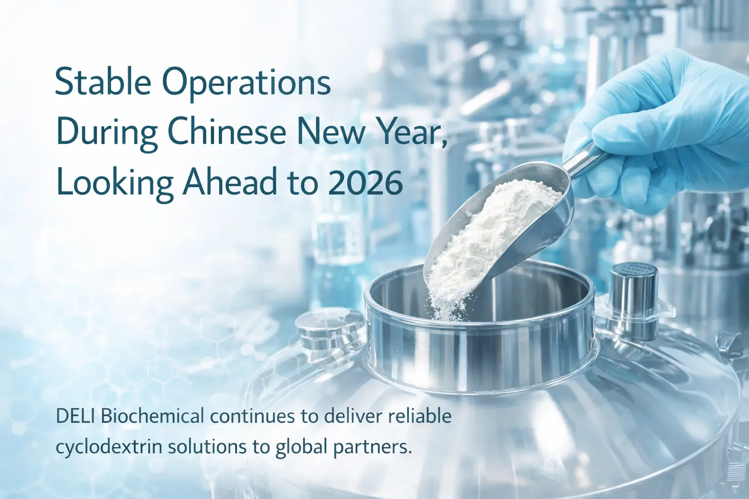 Sajrone liburan Taun Anyar Cina, DELI Biochemical njaga operasi sing stabil lan pasokan sing dipercaya liwat perencanaan sing ati-ati lan manajemen produksi sing tanggung jawab, negesake maneh komitmen kanggo kualitas, keamanan, lan kemitraan jangka panjang nalika perusahaan kasebut mlebu ing 2026.