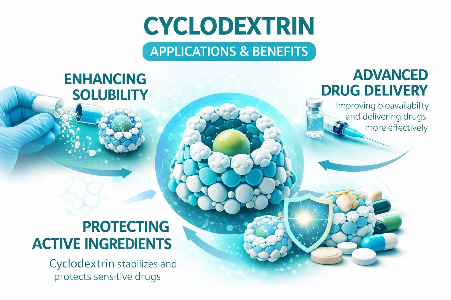 Teknologi cyclodextrin wis ngganti cara nggawe obat kanthi luwih gampang kanggo ngatasi masalah manufaktur sing angel. Struktur khusus molekul ndadekake komplek inklusi bisa dibentuk, sing ningkatake kelarutan, stabilitas, lan panyerepan nalika njaga tingkat safety sing dhuwur. Minangka ilmu farmasi nggawe kemajuan menyang cara pangiriman obat sing luwih maju, panggunaan cyclodextrin terus berkembang ing macem-macem wilayah perawatan. Cyclodextrin minangka alat penting kanggo para ilmuwan farmasi sing nggarap obat-obatan generasi sabanjure amarga efektifitas sing dituduhake, ditampa kanthi sah, lan inovasi sing terus-terusan.