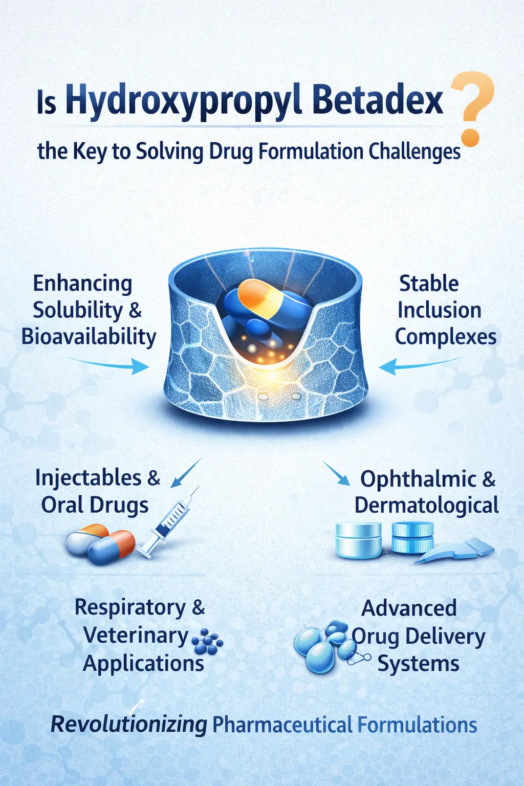Ya, Hydroxypropyl Betadex minangka cara anyar kanggo ngatasi masalah ing manufaktur obat. Liwat teknologi kemasan molekuler, turunan cyclodextrin canggih iki ngowahi bahan kimia sing ora larut dadi obat sing bisa digunakake dening awak. Ilmuwan ing industri farmasi ing saindenging jagad gumantung marang eksipien farmasi iki kanggo ngatasi masalah kelarutan sing sacara tradisional mbatesi potensial penyembuhan. Amarga kimia host-tamu khusus, molekul kasebut bisa mbentuk kompleks inklusi sing nggawe obat luwih larut ing banyu lan bioavailable nalika tetep stabil sajrone proses manufaktur.